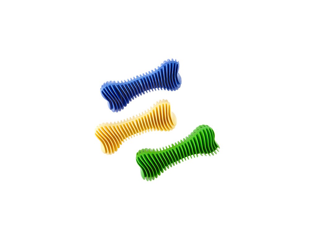 Hračka je vyrobena z netoxického plastu, vhodná pro posílení žvýkacích svalů psů.
