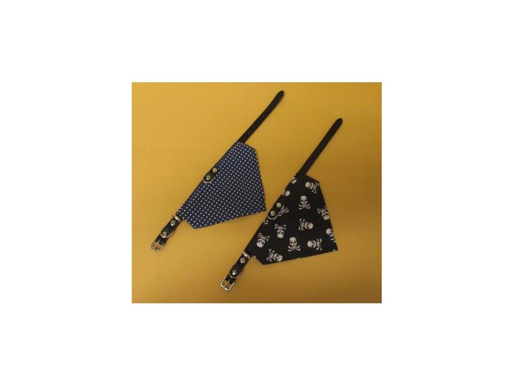 Hladký kožený obojek je vyroben z kvalitní kůže, pro pevnost je obšitý nití do barvy. Je vybaven svařovanými déčky, tak dosahuje maximální pevnosti. Jeho ozdobou je bavlněný šátek v různém designu.