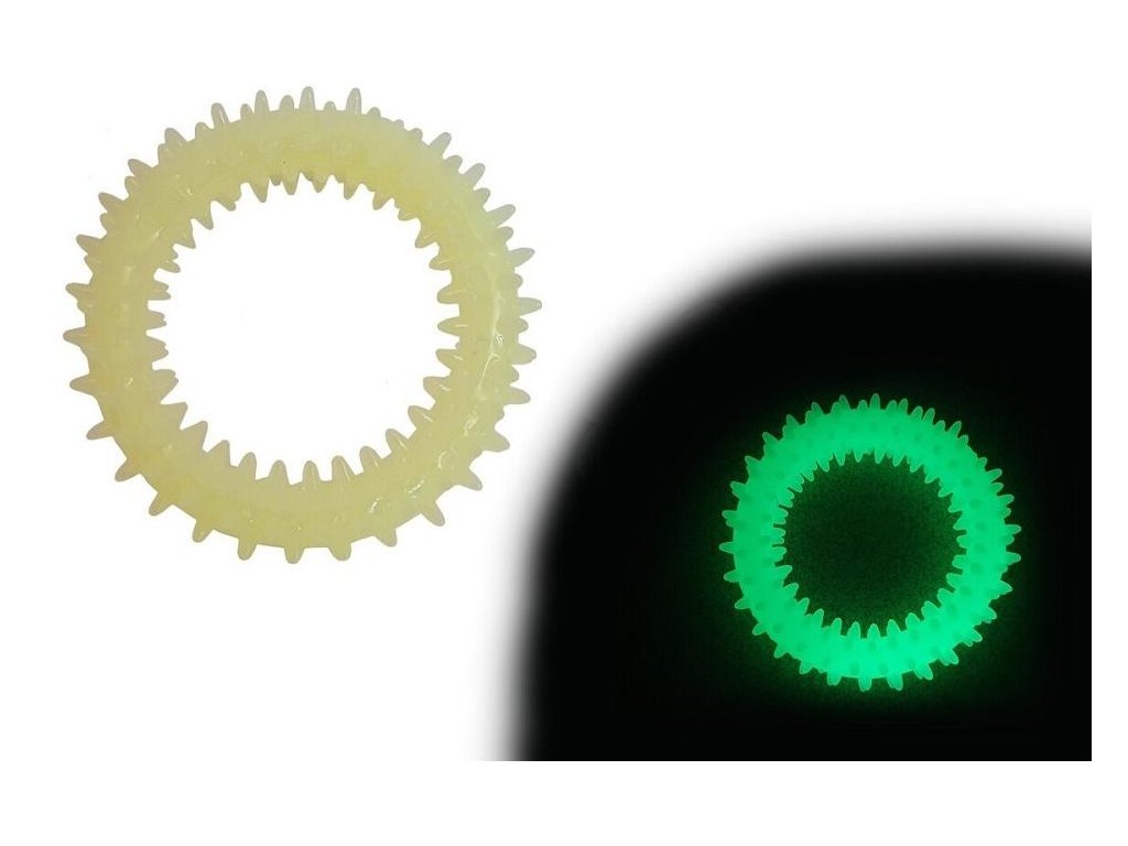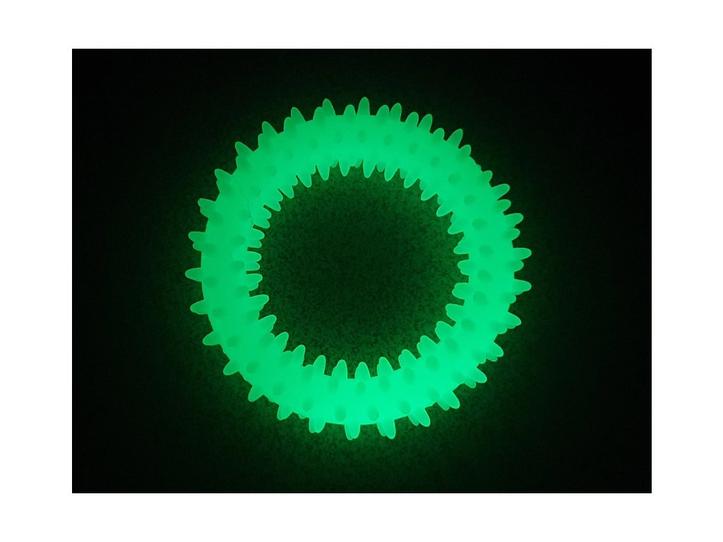Interaktivní kroužek s jehlánky je vyroben z unikátního luminiscenčního zdravotně nezávadného materiálu. Kroužek vstřebává světlo a poté ve tmě svítí 30 - 50 minut. Interaktivní hračka podporuje rozvoj Vašeho pejska, je vhodná pro házení, aportování a přetahování.