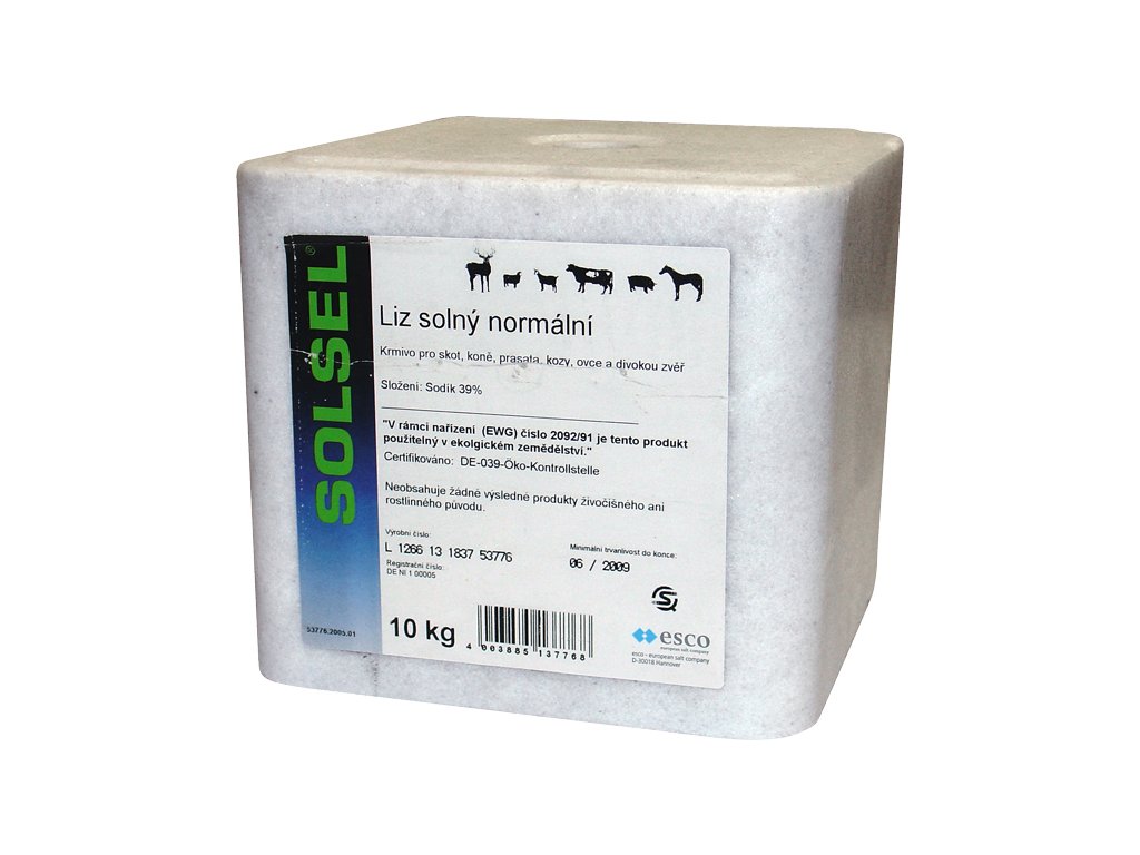 Solný liz Solsel Normal pro koně, dobytek, ovce, kozy, prasata a zvěř 10 kg - schváleno pro využití v ekologickém zemědělství. Liz z čisté vakuové soli, pro ideální a jednoduchý způsob, jak doplnit krmení hovězího dobytka, ovcí, koz, koní, srn a vysoké zvěře o soli a přírodní minerální látky.