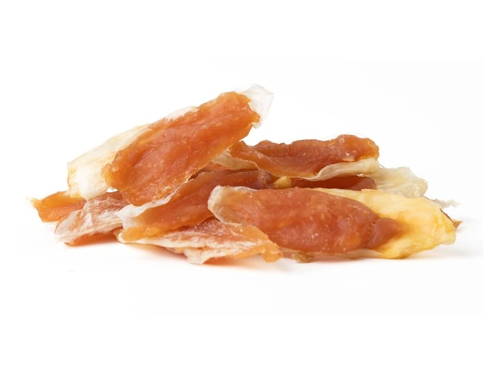 100% přírodní masová pochoutka z kuřecího masa pro všechny psy, slouží jako odměna při hře, výcviku nebo jako doplněk stravy při cestách. Nezatěžuje organismus, je výborně stravitelný. Bez negativních účinků na zuby a dásně.