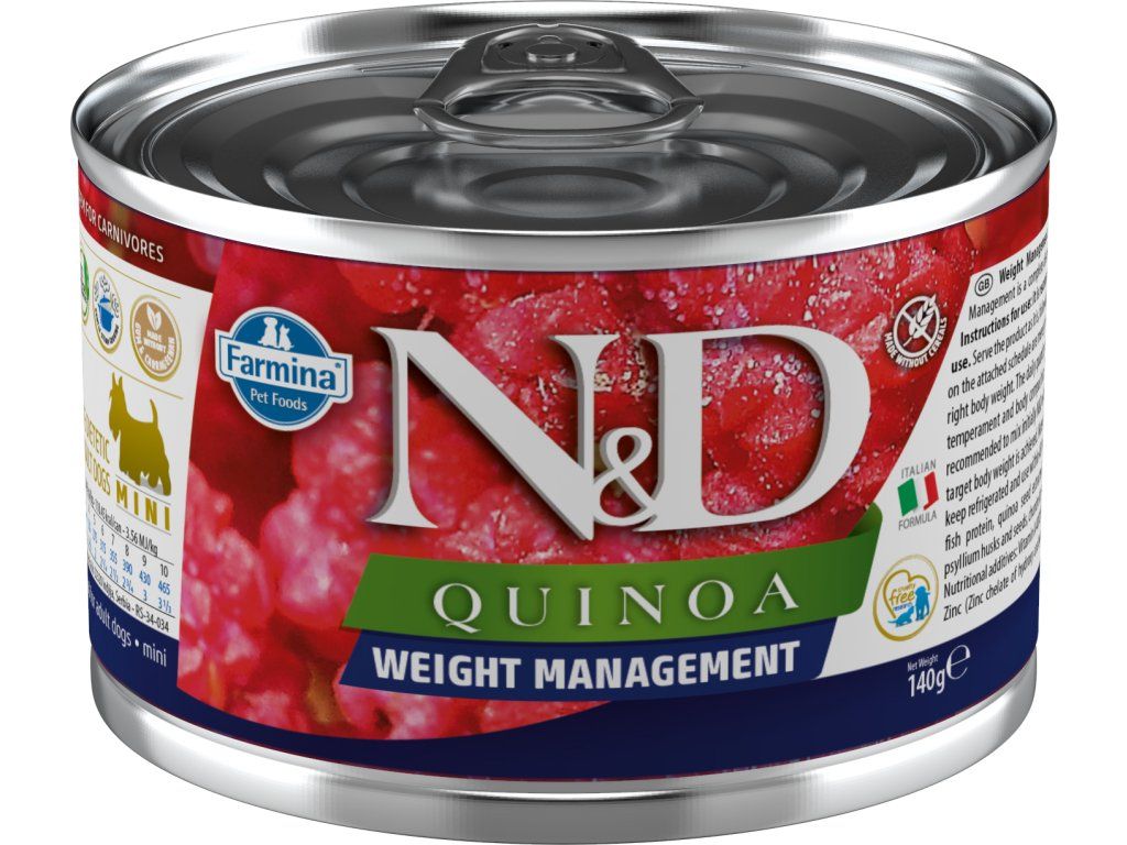 Farmina N&D Quinoa Weight Management je krmivo pro zvláštní účely výživy určené ke snížení nadměrné tělesné váhy.
