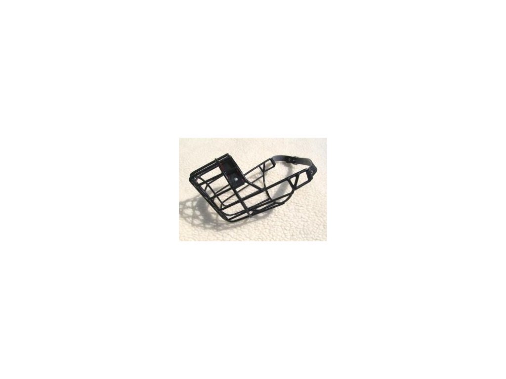 Kovový náhubek s koženými řemínky na zapínání pro fenu boxera