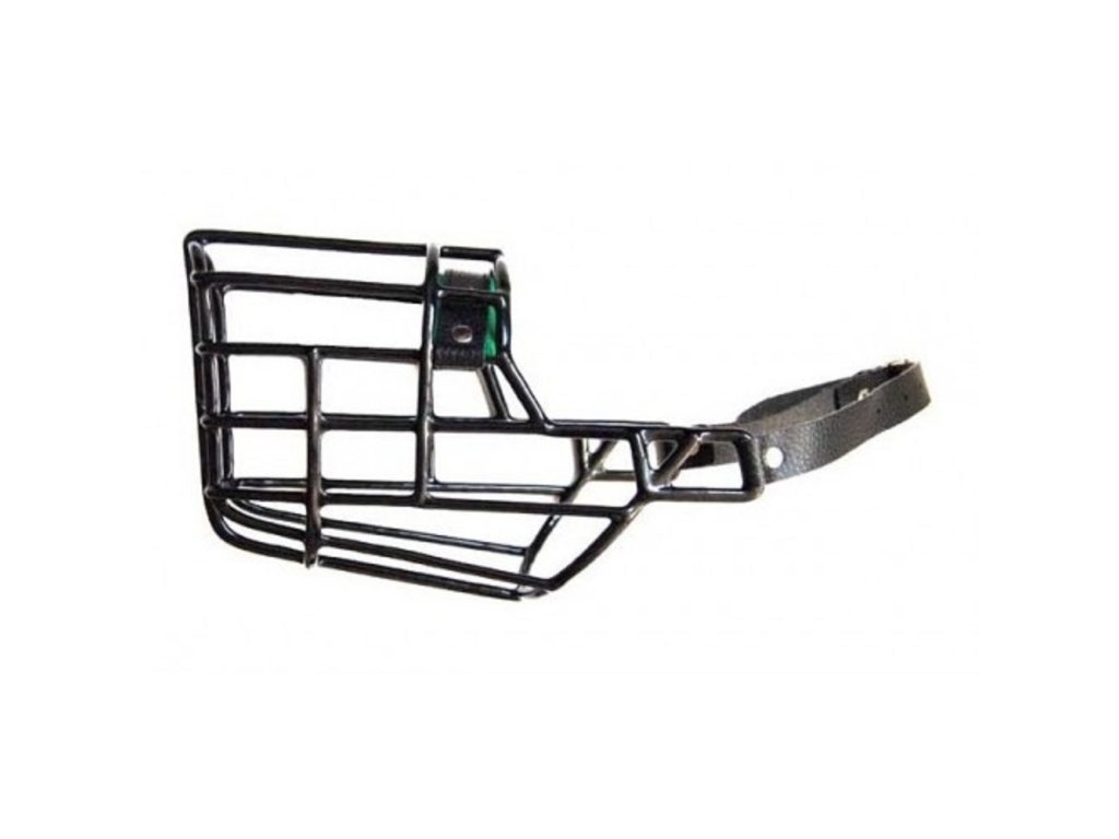 Kovový náhubek s koženými řemínky na zapínání pro fenu brazilské fily