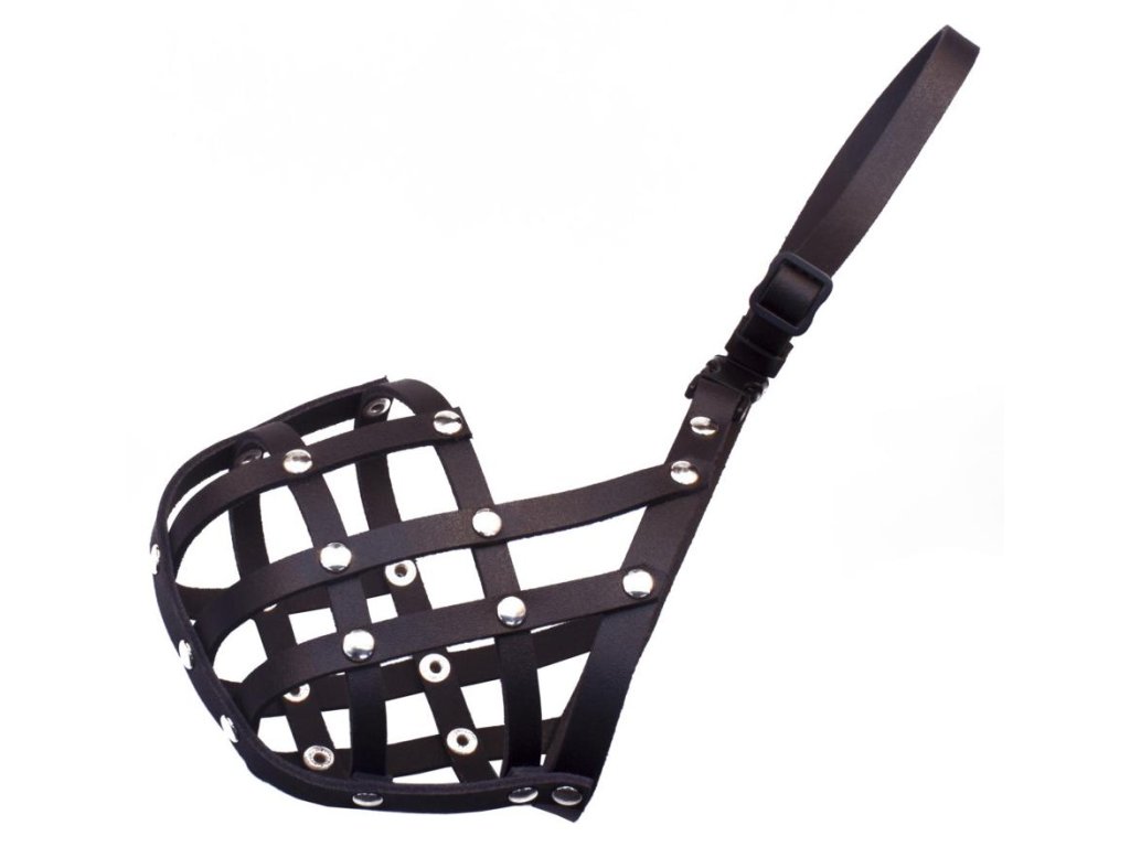 Kovový náhubek s koženými řemínky na zapínání pro fenu amerického kokra