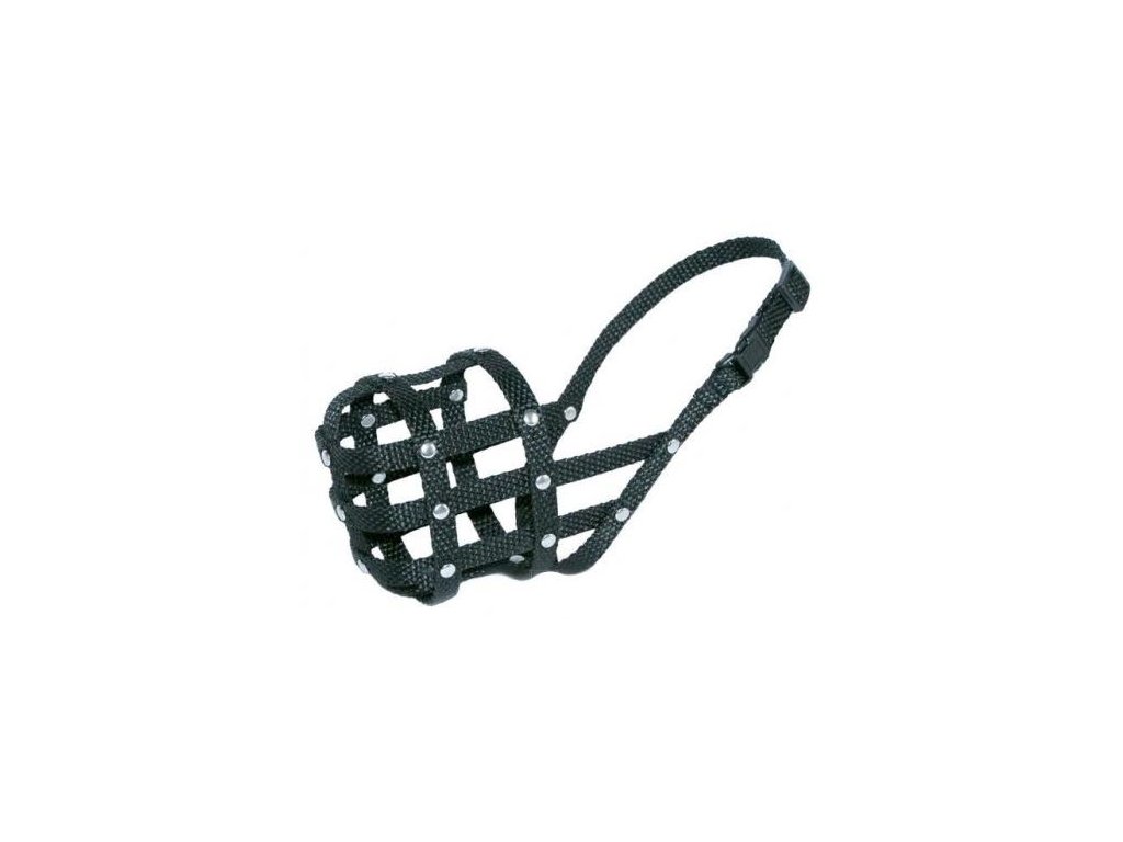 Kovový náhubek s koženými řemínky na zapínání pro fenu malého knírače