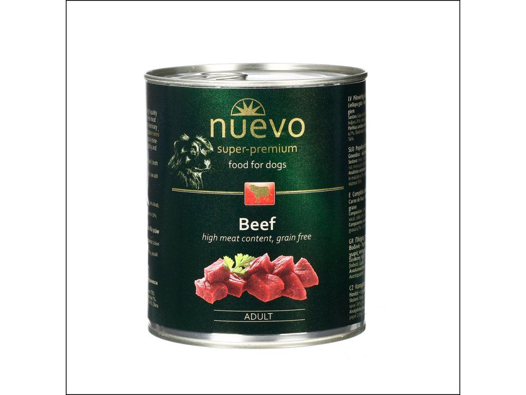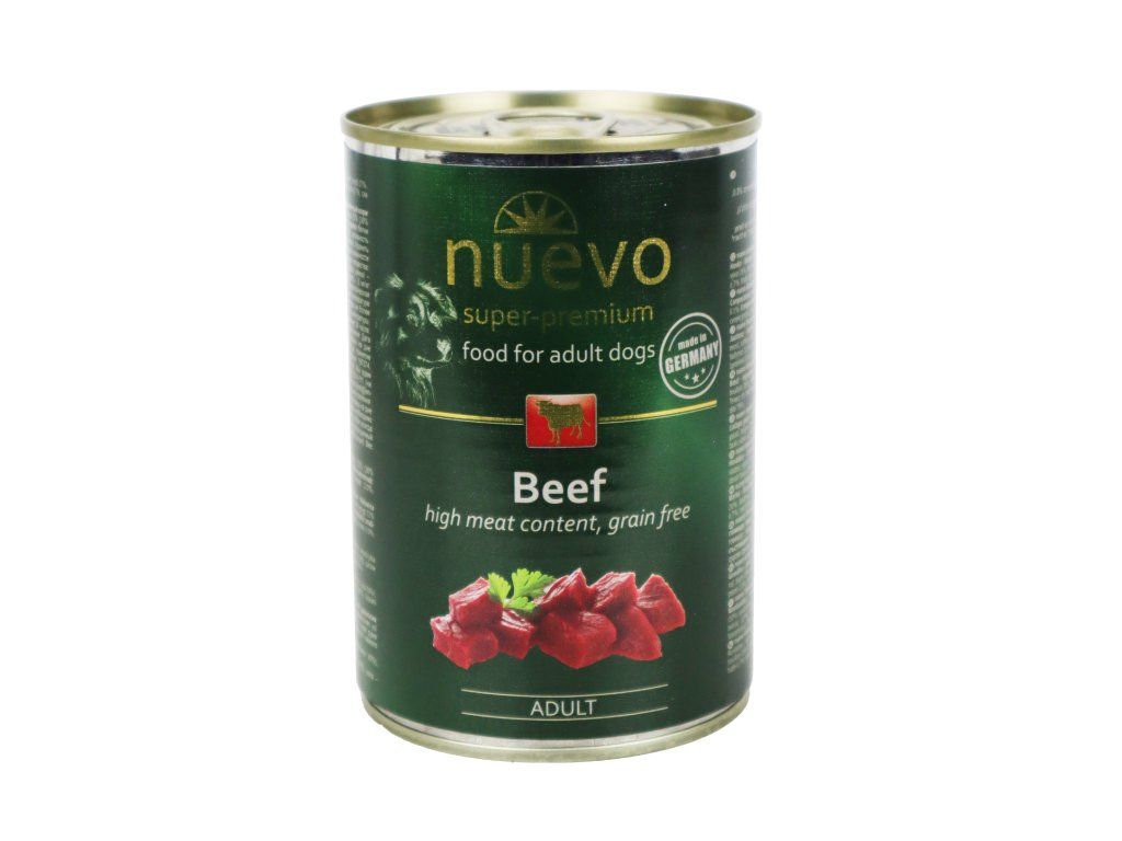 Konzerva Nuevo Hovězí je vhodná pro dospělé psy všech plemen, s obsahem hovězího masa. Vysoký podíl masa (73%) obsahuje velké množství cenných bílkovin. Esenciální látky, vitamíny, minerály a další výživné látky vytvářejí dokonale vyváženou, komplexní stravu, kterou si i ten nejmlsnější a nejvybíravější jedlík okamžitě zamiluje. Krmivo je výborným zdrojem energie, výborně stravitelné a obzvláště chutné.
