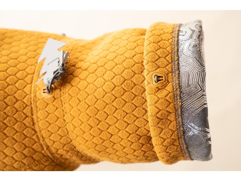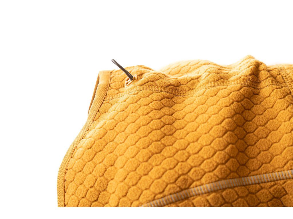 Vnější materiál hřejivé mikiny Warming Midlayer ECO je z měkkého recyklovaného ECO fleecu s voštinovou strukturou. Vnitřní vrstva je opatřena hřejivou fóliovou žerzejovou podšívkou, která se mezi milovníky psů ukázala jako velmi funkční a důvěryhodný materiál. Fóliová podšívka aktivně odráží tělesné teplo psa zpět k němu, čímž se stává účinným topením. Měkké materiály prakticky nešustí, takže je bunda vhodná pro psy citlivé na hlučné zvuky. Psí mikina Warming Midlayer ECO je také vynikající volbou jako první oděv pro psy, kteří nejsou zvyklí nosit oblečení.