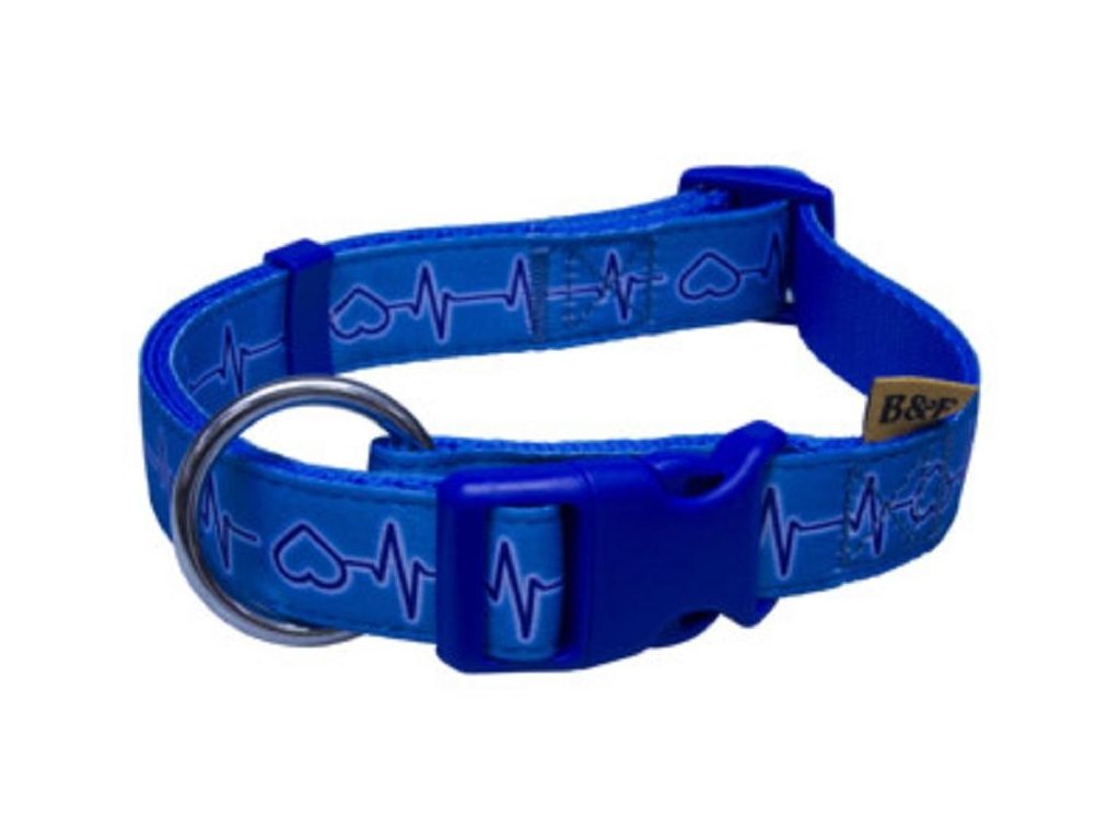 Obojek z popruhu s motivem EKG je velmi měkký a příjemný. Zapínání na plastovou přezku, snadno nastavitelný obvod. Součástí je svařované kovové déčko pro připnutí vodítka. Rozměr: šířka 2cm, délku je možno nastavit na 38-60cm