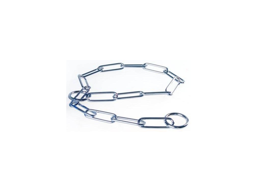 Kovový, stahovací, jednořadý obojek. Jedná se o typ obojku, který se utáhne, když za něj pes zatáhne. Pejsek pak reaguje na zvýšený tlak na krku a na zvuk řetízku.