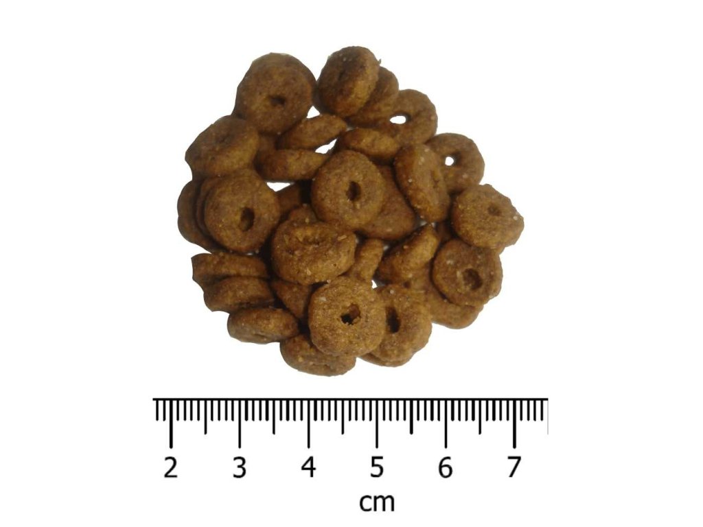 Analytické složky: hrubý protein 31,5 %, hrubý olej a tuky 16,5 %, mastné kyseliny omega 6: 3 %, mastné kyseliny omega 3: 0,9 %, hrubá vláknina 2,3 %, celková dietní vláknina 6,5 %, hrubý popel 6,9 %, vápník 1,3 %, fosfor 1,1 %, vlhkost 9 %.