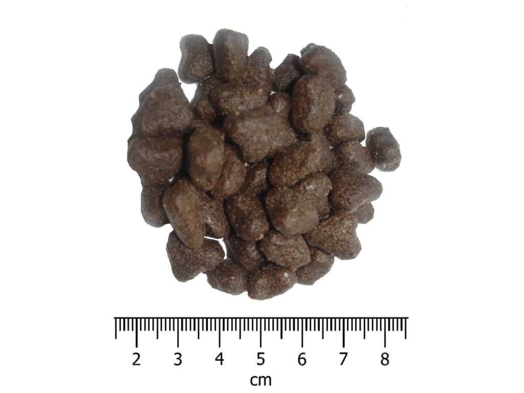 Hrubý protein 30 %, hrubé oleje a tuky 22 %, omega-3 mastné kyseliny 0,80 %, omega-6 mastné kyseliny 2,00 %, EPA + DHA 500 mg/kg, hrubá vláknina 2,75 %, hrubý popel 8 %, vápník 1,50 %, fosfor 1,15 %. Metabolizovatelná energie: 4 112 kcal/kg.