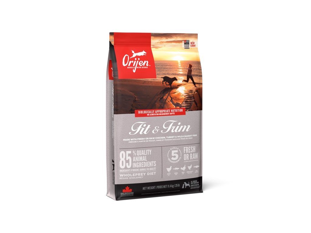 ORIJEN FIT & TRIM se vyznačuje bezkonkurenčním obsahem volně chovaných kuřat a krůt, ryb lovených v přírodních vodách a vajec z hnízdních chovů, vše je dodávané čerstvé v bohatě výživném podílu celé kořisti. S nízkým obsahem tuků a sacharidů a s jedinečnou chutí jablek, dýní a máslových dýní zajištují krmiva ORIJEN vrcholovou kondici všech dospělých psů, včetně toho vašeho.