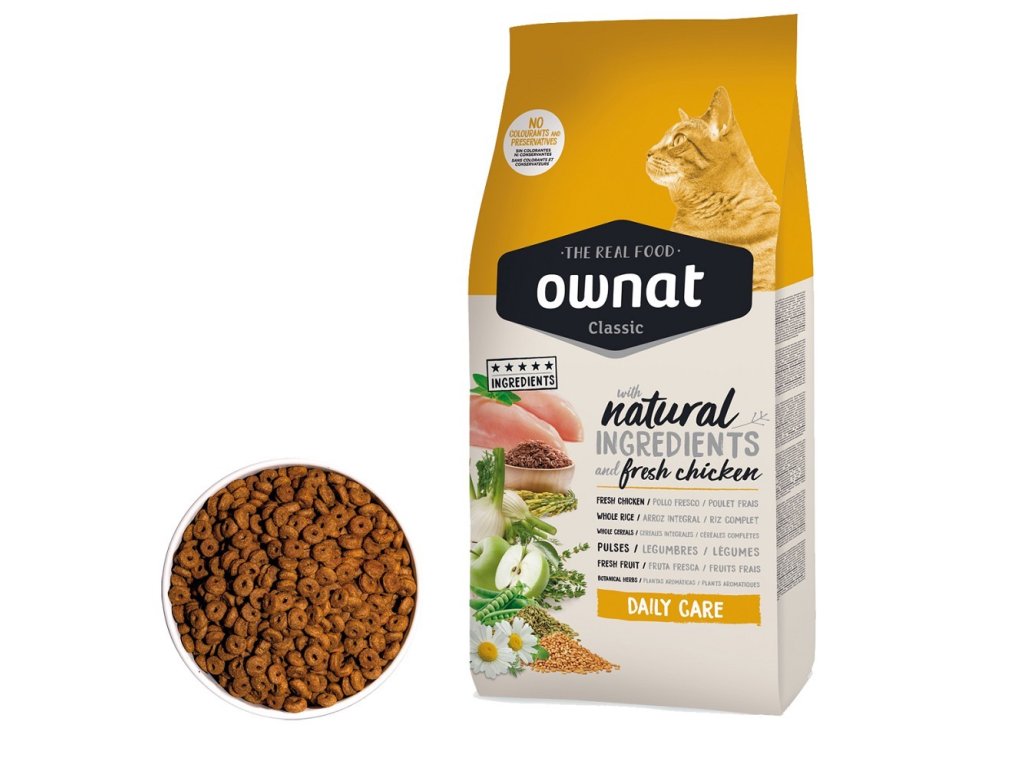 - Krmivo OWNAT CLASSIC CAT Daily Care je skvělou volbou pro každodenní výživu koček všech plemen, zajišťuje jim zdraví a vitalitu po celý den.
