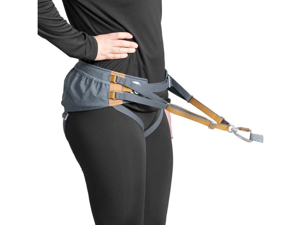 Lehký, flexibilní a pro nositele téměř neviditelný. Tento pás je pohodlný a vhodný pro každého dobrodruha, který oceňuje svobodu. Pohodlí je zaručeno díky flexibilnímu a nastavitelnému bedernímu pásu a nastavitelným nožním popruhům. Pás se těsně upevňuje kolem boků pomocí lehké kovové spony, která se snadno otevírá/zavírá. Má elastický pas nastavitelný od 70-110 cm / 28-43", a když je doplněn o nožní popruhy, poskytuje dokonalou pánevní rovnováhu a podporu bez ohledu na to, co váš pes právě provádí.