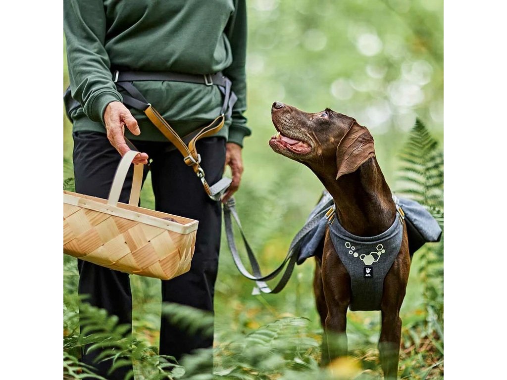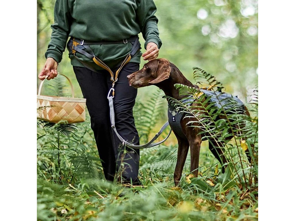 Pro větší bezpečnost a pohodlí je Váš pes připevněn k samostatnému popruhu na přední straně pásu pomocí karabiny s elastickým prvkem navrženým tak, aby tlumil jakékoli náhlé pohyby. Expedition Belt ECO lze kombinovat s jakýmkoli vodítkem Hurtta.