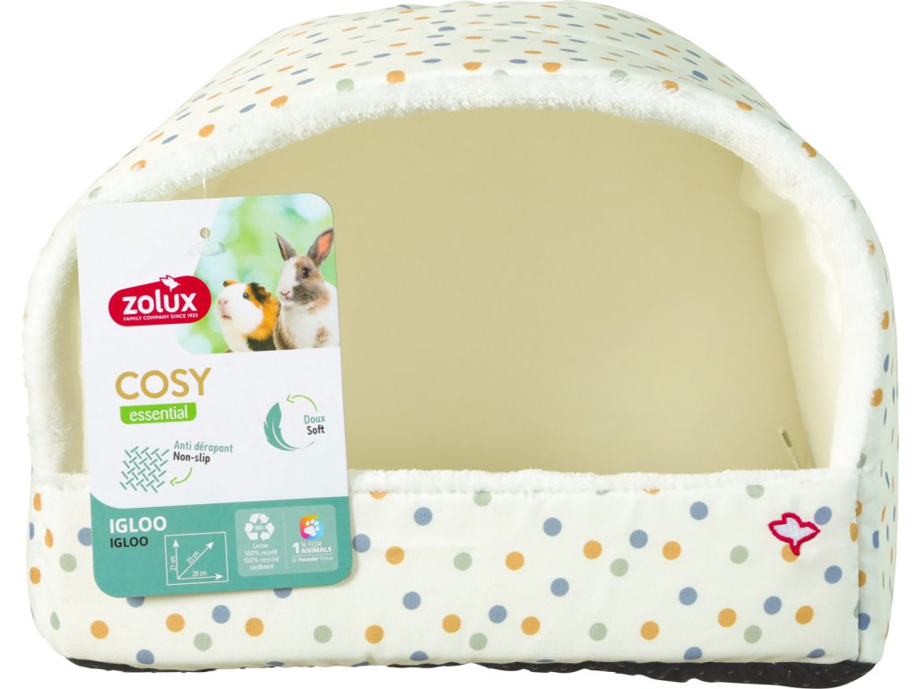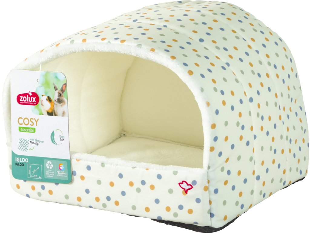 Pohodlné iglú poskytuje králíkům a morčatům bezpečné a útulné místo k odpočinku a schování. Je ideální pro každodenní relaxaci i klidný spánek, kdy se zvíře cítí chráněné a v teple.