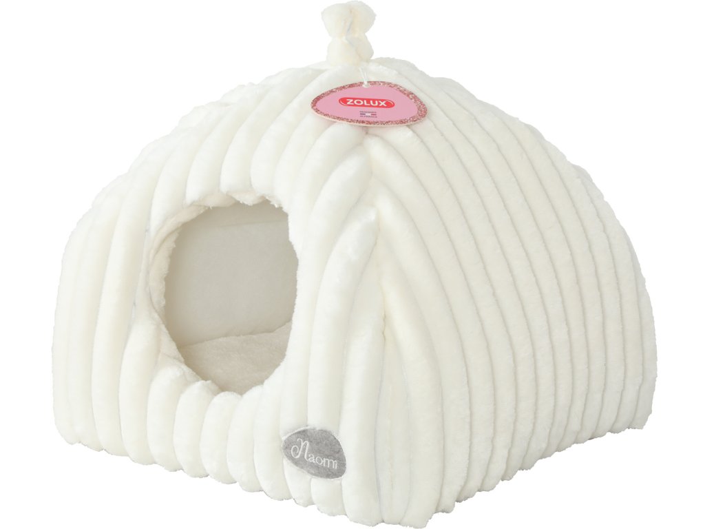 Pohodlný pelíšek pro kočky ve tvaru iglú má kulatý otvor a odnímatelný polštář uvnitř.