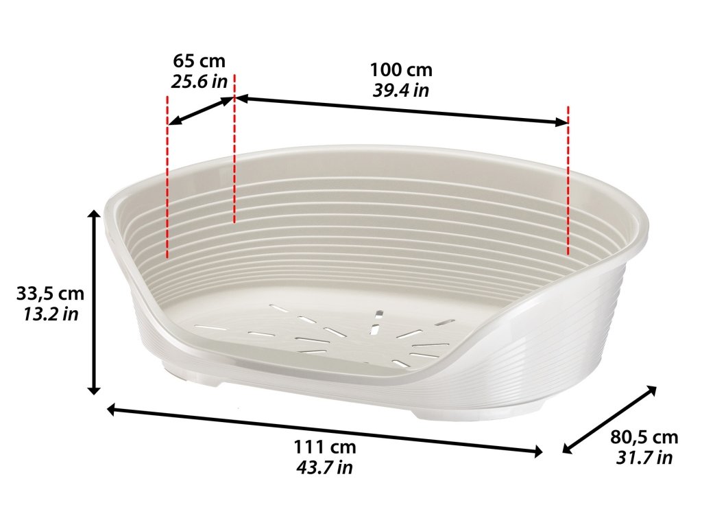 Jedná se o útulný vnitřní plastový pelíšek pro kočky a psy. Podívejte se na design se zaobleným tvarem: boky jsou vysoké a pohodlné a přední část je nízká, s užitečnou opěrkou brady pro vašeho mazlíčka. Má také protiskluzové podpěrné nožky a základna má speciální štěrbiny, které umožňují správný průchod vzduchu.