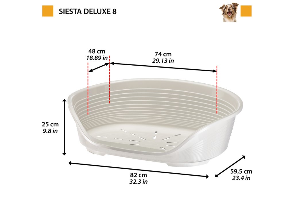 Plastové pelíšky Siesta Deluxe jsou dostupné v šesti velikostech, pro psy všech velikostí. Siesta Deluxe 2, 4, 6 a 8 jsou zvláště vhodné také pro kočky. Udělejte si čas a rozhodněte se, jakou barvu z naší široké nabídky preferujete.