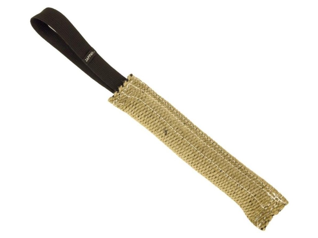 Měkká výcviková pomůcka se dvěma poutkami z jutového materiálu
