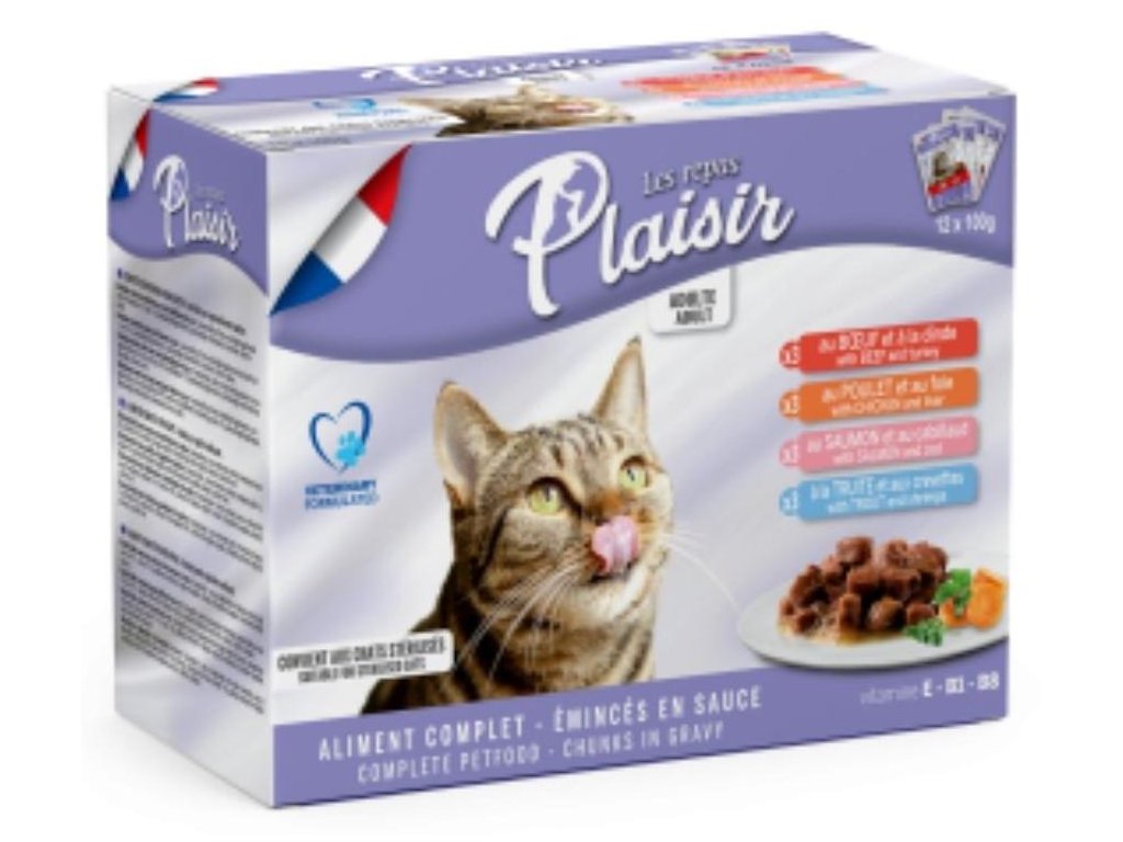 Plaisir Cat kaps. hovězí, kuřecí, losos, pstruh 12×100g