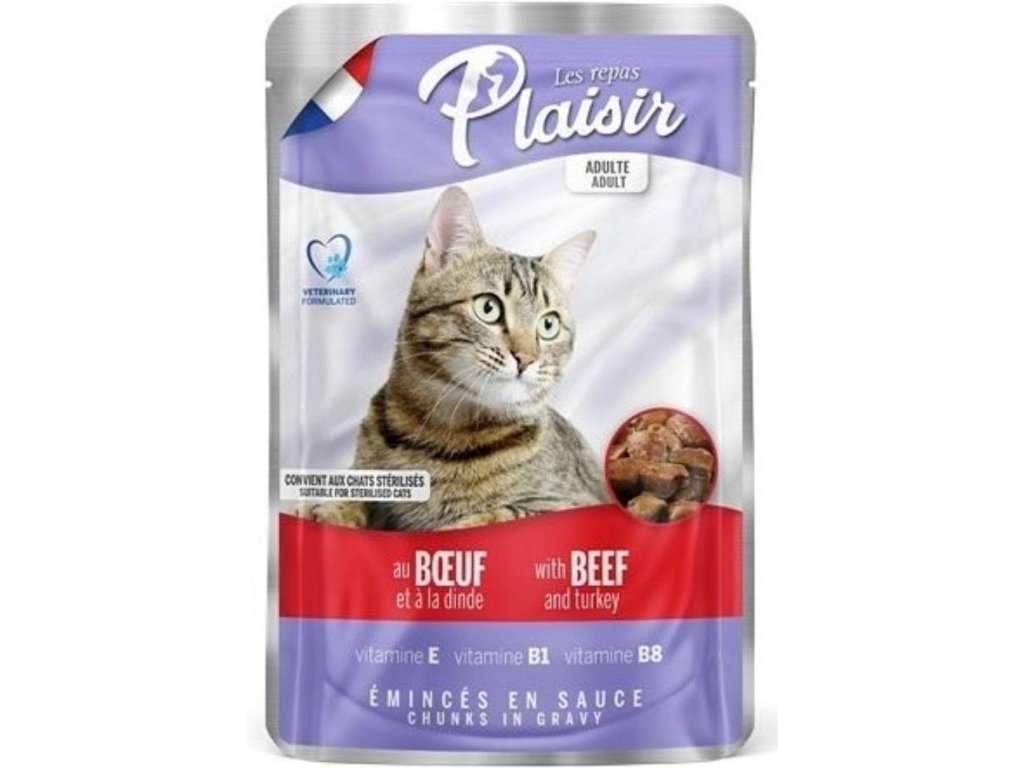 Plaisir Cat kapsička hovězí & krůtí 100g