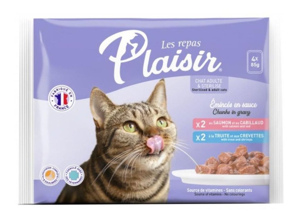 Plaisir Cat kapsičky Sterilised losos & pstruh 4×85g