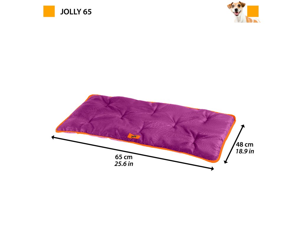Jolly je podložka pro psy vyrobená z hi-tech (super odolné a vodoodpudivé) látky. Je ideální pro přepravky nebo jako potah autosedačky nebo k ochraně zavazadlového prostoru. Polštář Jolly je také vynikajícím doplňkem pro dřevěné boudy. Polštář lze prát v pračce na nízké teploty (max 30 ° C).