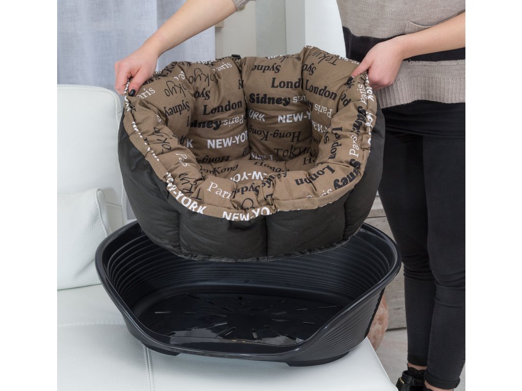 Kvalitní, plastový pelíšek s vyvýšenými okraji, sníženým vstupem a protiskluzovým podstavcem pro jedinečné pohodlí Vašeho pejska