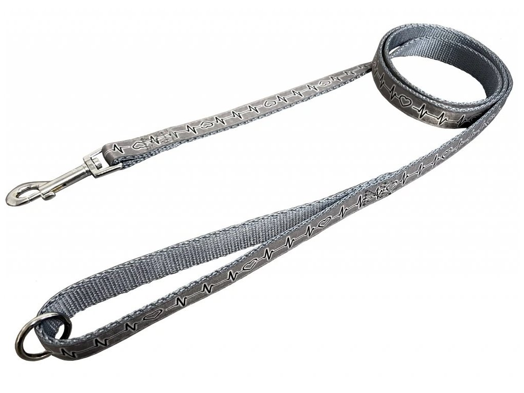 Vodítko je vyrobeno z měkkého popruhu s motivem EKG. Vodítko je pevně prošité, v uchu všitý svařovaný kroužek pro zkrácení na polovinu a přehození pes tělo.
