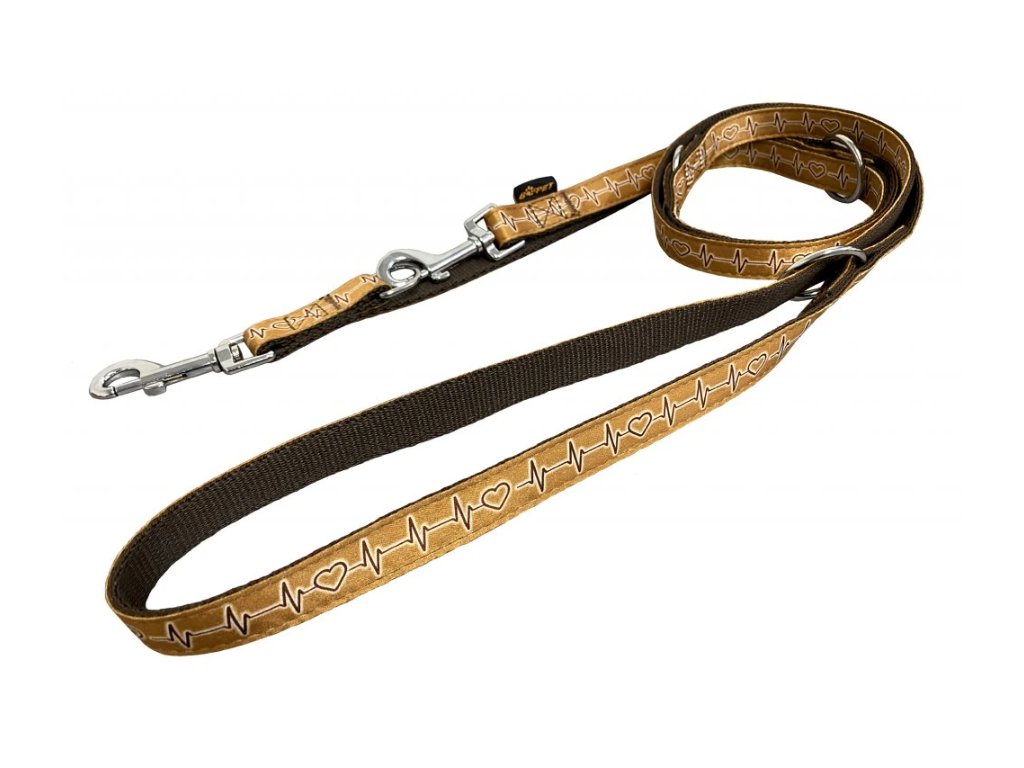 Přepínací vodítko z popruhu s motivem EKG je vyrobeno z velmi měkkého a příjemného materiálu. Vodítko je pevně prošité, pro možnost prodlužování a zkracování je vybaveno svařovanými kroužky.