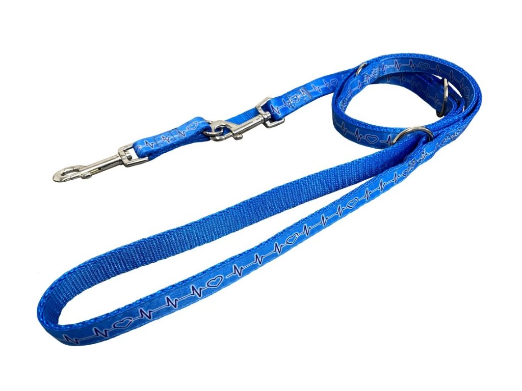Přepínací vodítko z popruhu s motivem EKG je vyrobeno z velmi měkkého a příjemného materiálu. Vodítko je pevně prošité, pro možnost prodlužování a zkracování je vybaveno svařovanými kroužky.