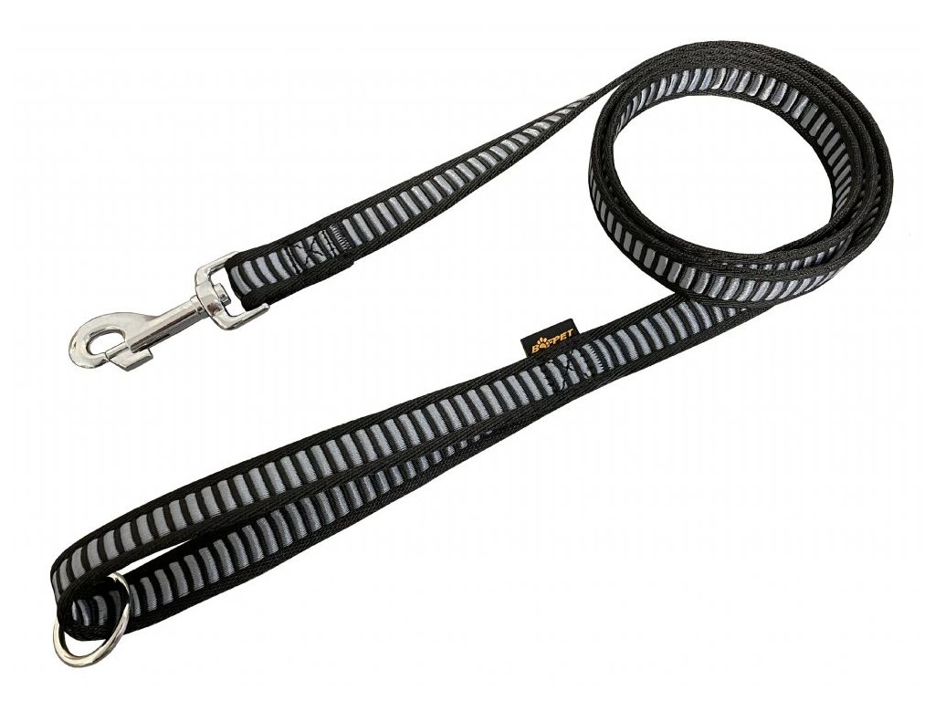 Vodítko je vyrobeno z velmi příjemného a měkkého popruhu s vetkaným vzorem žebříku. Vodítko je pevně prošité, v uchu má všitý svařovaný kroužek pro zkrácení na polovinu a přehození přes tělo.