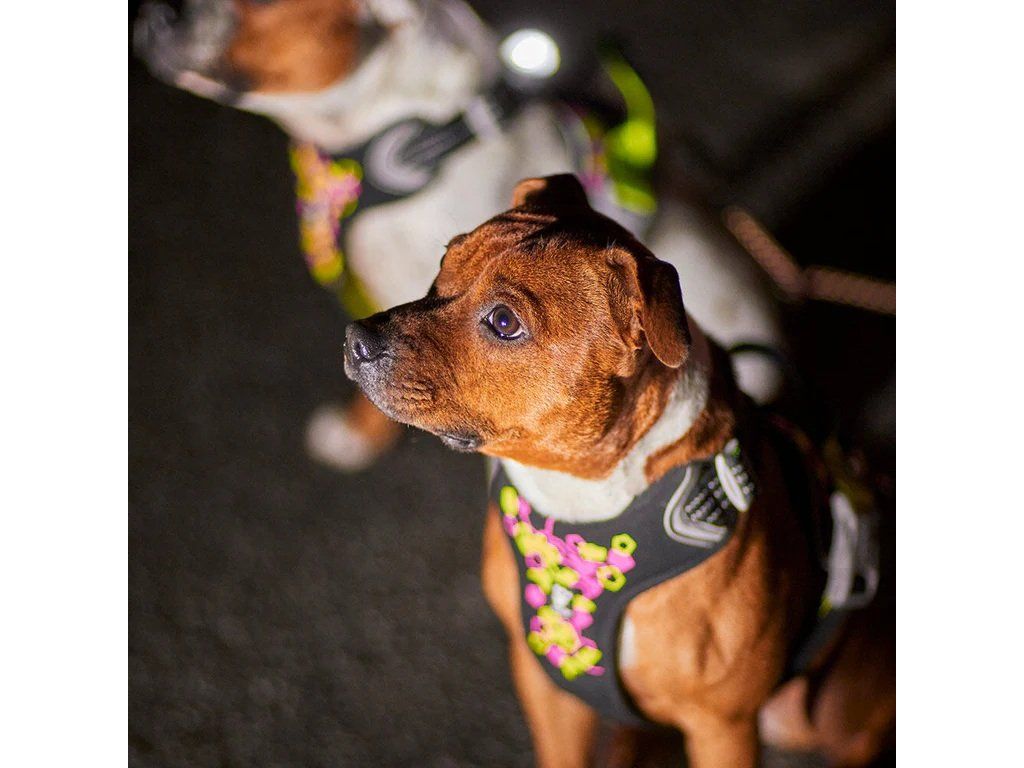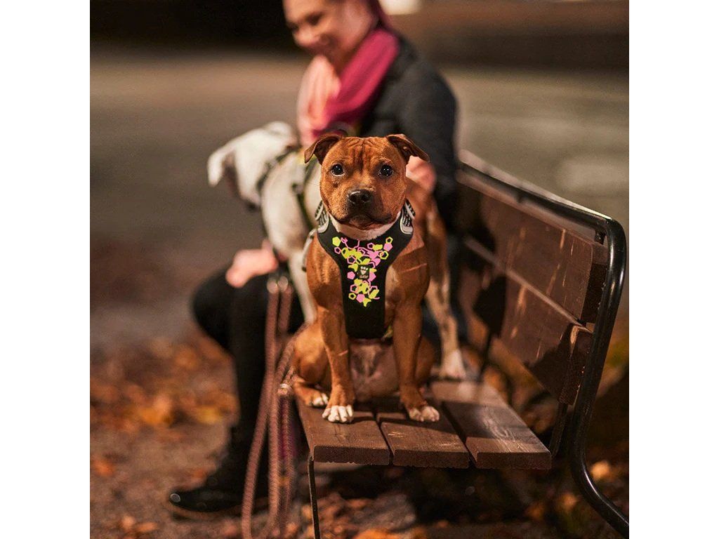 Modernizovaný postroj Weekend Warrior Neon je jasný, barevný, zábavný a navržený tak, aby ochránil vašeho psa. Má rozsáhlé reflexní plochy, včetně velkého, zářivého dvoubarevného reflexního potisku a speciálních reflexních pruhů 3M na popruzích, které zajistí, že váš pes bude dobře viditelný i za těch nejhorších světelných podmínek.