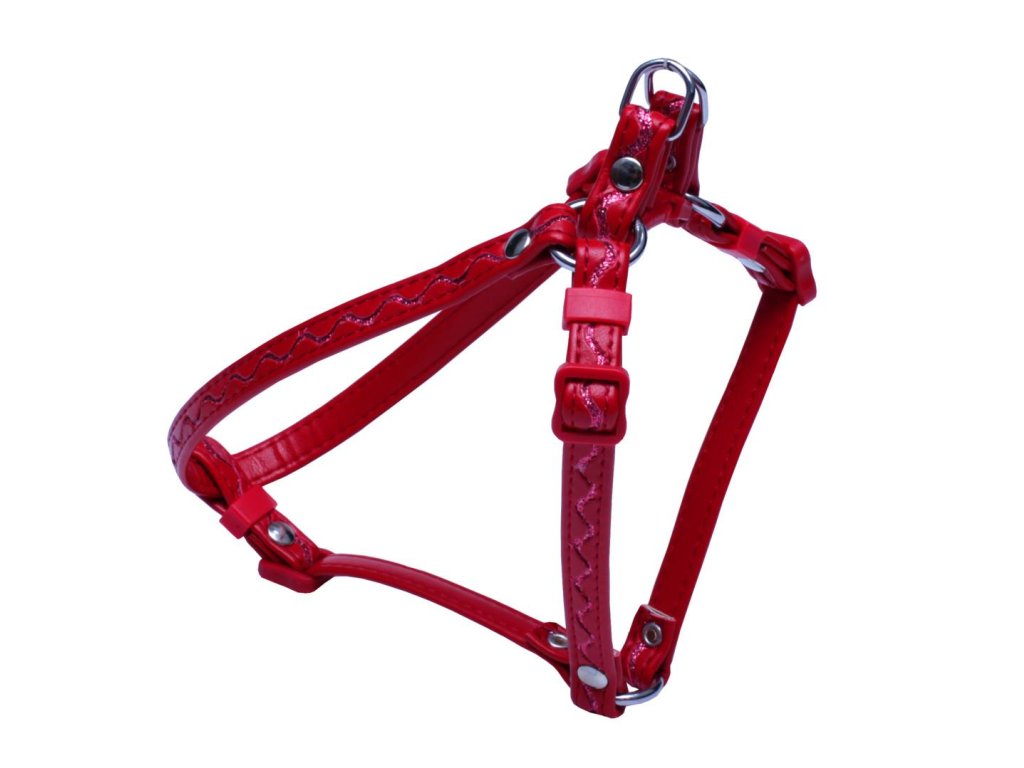 Postroj koženka č.1 stříbrné vlnky - červený