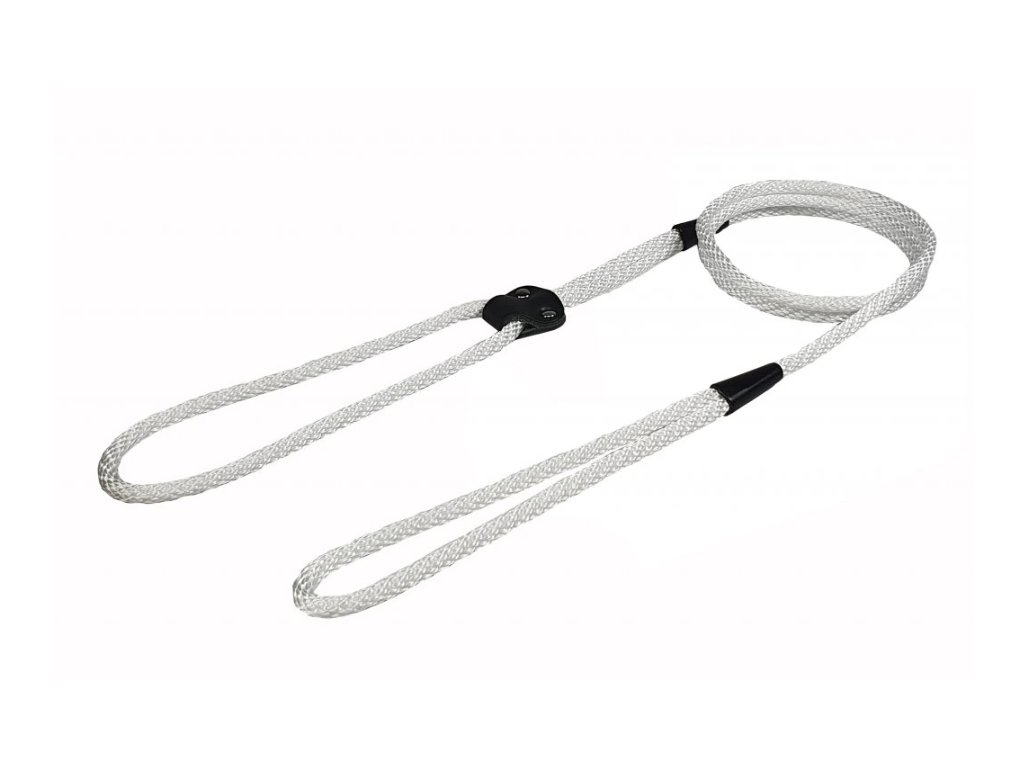Nylonové vodítko vhodné na výstavy a předváděcí akce. Vyrobeno z pevného a měkkého lana spirála v jednobarevném provedení. Spoje jsou svařeny, prošity a překryty plastem, tak dosahují maximální pevnosti. Na jednom konci je ucho a na druhém smyčka, kterou lze dle obvodu krku upravovat pomocí kožené vsuvky.