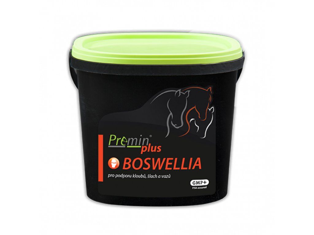 Premin® plus BOSWELLIA pro prevenci i akutní stavy obtíží pohybového aparátu (kulhání, pohmožděniny, artróza, pro zvýšení elasticity šlach atd). Dále příznivě působí při dlouhotrvajících zánětech, respiračních potížích a obtížnosti dýchání a špatném trávení.