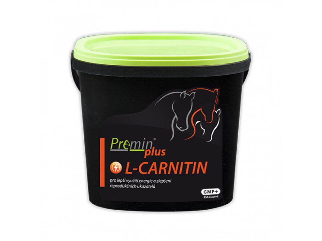 Doplňkové krmivo Premin® plus L-CARNITIN je určeno pro všechny kategorie sportovních, dostihových a chovných koní. Obsahuje l-karnitin, který jako součást kosterní i srdeční svaloviny zlepšuje adaptaci svalů na trénink i závody a urychluje regeneraci organismu po zátěži. Přechází do mléka kojících klisen a naplňuje požadavky na hladinu l-karnitinu u hříbat, u nichž není jeho biosyntéza plně vyvinuta. Zlepšuje srdeční činnost a zvyšuje odolnost srdeční svaloviny vůči stresu. Zvyšuje aktivitu imunitních buněk ve stresových situacích a zvyšuje jejich počet . Zlepšuje reprodukční ukazatele u chovných klisen a hřebců. U hřebců zvyšuje počet a oplodňovací schopnost spermíí. Zlepšuje činnost jater a chrání je před tukovou degenerací.