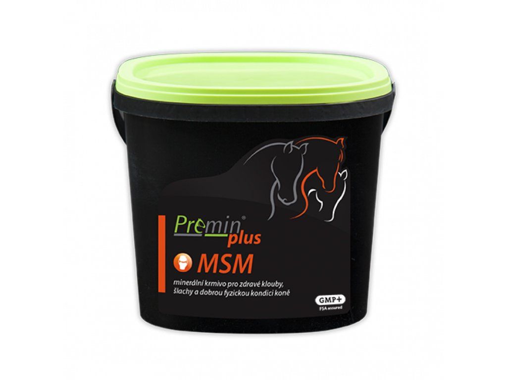 Premin® plus MSM se jako přirozená forma organické síry podílí na tvorbě základních aminokyselin methioninu a cysteinu, je důležitý pro tvorbu kolageních vláken, napomáhá eliminaci počínajících zánětů kloubů a šlach, zmírňuje alergické reakce a chrání organismus před negativními účinky volných radikálů, zvyšuje vitalitu organismu Pozitivně se projevuje při léčbě zánětu škáry a střelky kopytní. Zlepšuje kvalitu srsti. Zmírňuje bolesti svalů a kloubů. Premin® plus MSM je určen pro všechny kategorie koní zejména pro koně ve sportovní nebo dostihové zátěži.