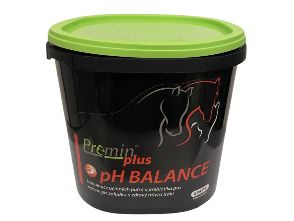 Minerální krmivo Premin® pH Balance je navrženo tak, aby účinně zvyšovalo pH v žaludku, zamezilo tvorbě žaludečních vředů a tak přispělo k udržení příznivého prostředí ve střevech. Obsahuje velmi účinné pufrační látky – calsea powder, purifikovaný oxid hořečnatý, prebiotikum Diamond V a extrudovaný len. Calsea Powder vzniká pomletím zvápenatělé mořské řasy Lithothamnium Calcereum. Má vysoký obsah vápníku, hořčík a mikroprvky organického původu. Purifikovaný a velmi jemný oxid hořečnatý má až 3 x vyšší pufrační kapacitu než uhličitan sodný. Diamond V je fermentační produkt - metabolit kvasinek, obsahující nukleotidy, betaglukany, mannany, organické kyseliny, antioxidanty, fytosteroly, proteiny a peptidy. Zlepšuje trávení a zvyšuje stravitelnost objemného krmiva. Betaglukany patří mezi imunomodulátory, které zvyšují odolnost organizmu vůči chorobám. Mannany z buněčných stěn kvasinek zamezují kolonizaci střev patogenními mikroorganismy. Antioxidanty chrání před nepříznivými vlivy volných radikálů. Extrudovaný len je zdrojem nenasycených mastných kyselin s příznivým poměrem omega-3 a omega-6. Je to dieteticky vhodná komponenta s pozitivním vlivem na kvalitu srsti a funkci jater.