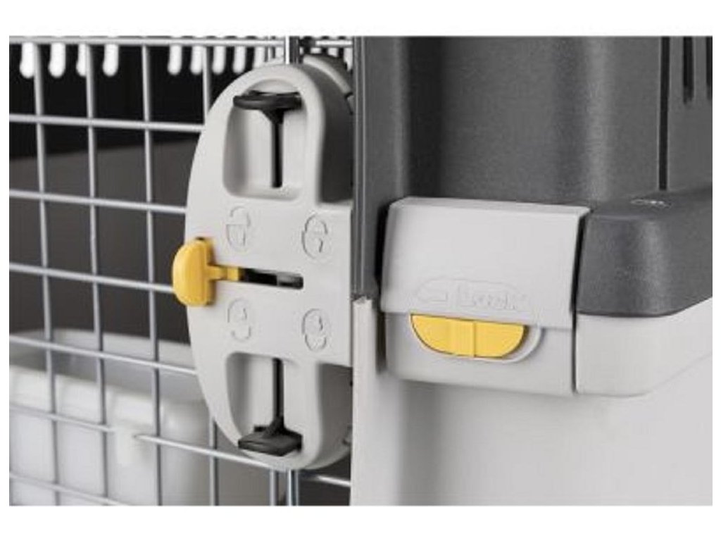 Praktická přepravka pro psy o hmotnosti do 38kg s protitlakovými prvky. Tento typ přenosky splňuje podmínky předpisů IATA - akceptována většinou leteckých společností. Přenoska má kovová uzamykatelná dvířka, na kterých je upevněná miska, v horní části přenosky jsou 2 velké úložné prostory, k přenosce je možno dokoupit kolečka a použít k tažení po zemi pomocí výsuvného ucha přepravky. Dostatek větracích otvorů zajišťuje optimální cirkulaci vzduchu.