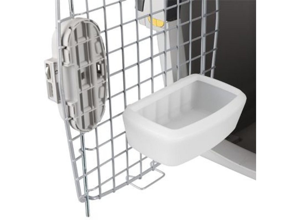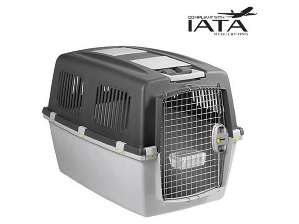 Praktická přepravka pro psy o hmotnosti do 50kg s protitlakovými prvky. Tento typ přenosky splňuje podmínky předpisů IATA - akceptována většinou leteckých společností. Přenoska má kovová uzamykatelná dvířka, na kterých je upevněná miska, v horní části přenosky jsou 2 velké úložné prostory, k přenosce je možno dokoupit kolečka a použít k tažení po zemi pomocí výsuvného ucha přepravky. Dostatek větracích otvorů zajišťuje optimální cirkulaci vzduchu.