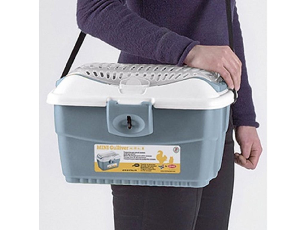 Plastová přepravka vhodná pro přepravu drobného zvířectva jako jsou například křečci, morčata, fretky a drobní králíci. Přepravku je možné nést nejen za ruční držadla, ale také přes rameno pomocí pevného popruhu. Přepravka je vybavena klipsnou pro bezpečné uzavření. Lze ji větrat samostatně otevíratelnou mřížkou ve víku.