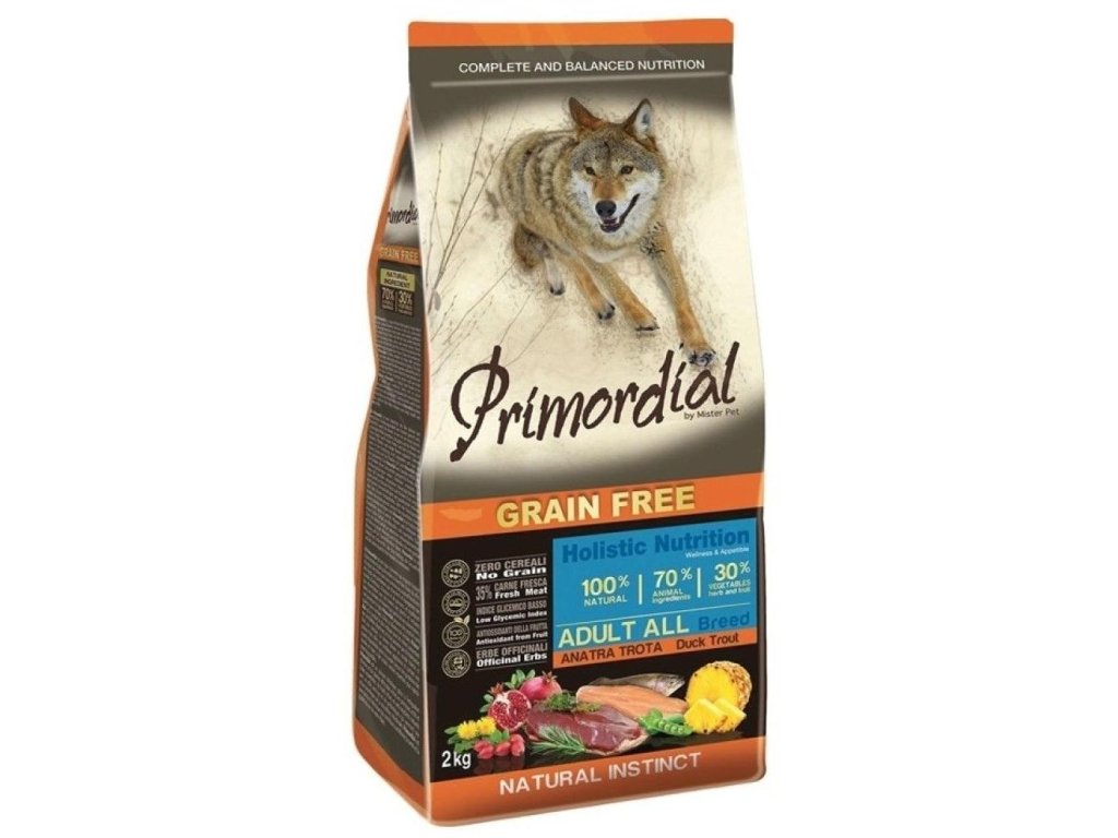 Vysoce stravitelné krmivo bohaté na proteiny vysoké biologické hodnoty. Obsahuje vhodnou kompozici aminokyselin. Kachní maso z volného výběhu, poskytuje kompletní bílkoviny a atraktivní chuť, kterou psi milují. Pstruh, ryba žijící pouze v čistých a čirých vodách, nabídne snadno stravitelné bílkoviny a je bohatý na omega-3 mastné kyseliny, které vykonávají důležitou kosmetickou funkci pro kůži a srst a jsou velmi prospěšné pro kardiovaskulární systém (srdce a cévy). Ovoce a zelenina bohaté na vitaminy, minerály a fytonutrienty, trávicí vlastnosti ananasu, antioxidační funkce granátového jablka a šípku a podpora jater ze strany ostropestřce dodávají tomuto krmivu dokonalou rovnováhu chuti a živin. Jedná se o skutečně holistický produkt, který aktivně přispívá k celkovému zdraví psa.