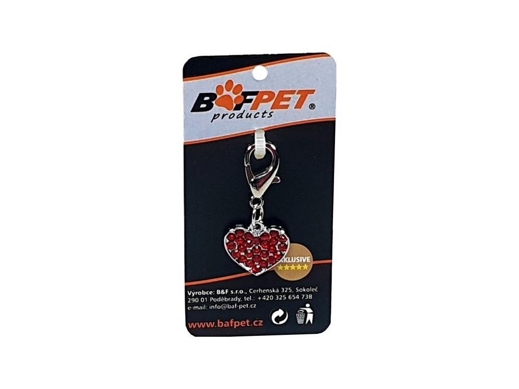Přívěsek ve tvaru srdíčka s červenými kamínky je vybaven malou karabinkou a proto jej lze použít jako přívěsek pro malá plemena, klíčenku nebo na mobil.- Je vyroben z kvalitního materiálu, neobsahuje nikl