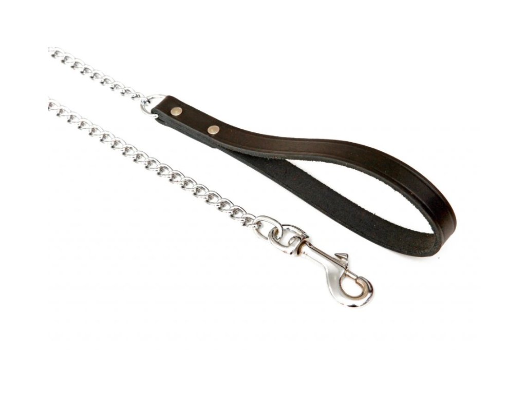 Řetízkové vodítko s malými očky je vyrobeno z pevného materiálu. Všechny jeho díly jsou svařeny a tak vodítko dosahuje maximální pevnosti a odolnosti. Ucho vodítka je vyrobeno z vrchové hovězí kůže, promaštěné, takže velmi příjemné do ruky. Je vhodný pro střední a velká plemena psů.