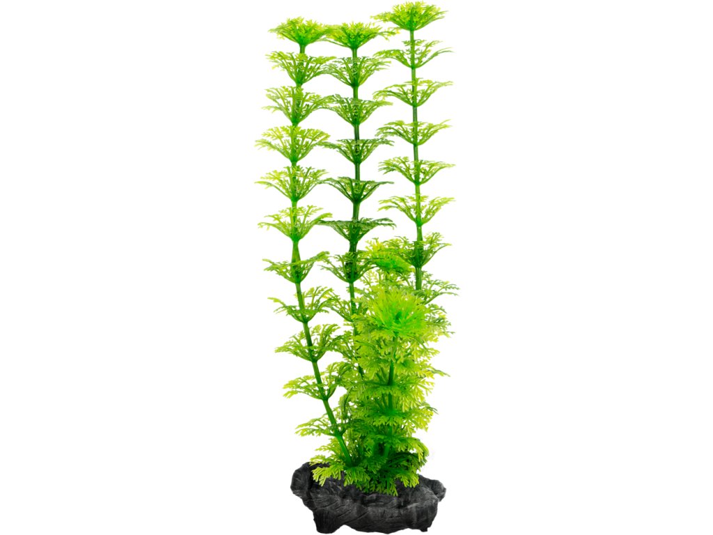 Přirozeně vypadající replika vodní rostliny ambulia. Tato umělá rostlina, nazývaná též "asijská bahnatka", je známá zejména pro své světle zelené jemně zpeřené listy.