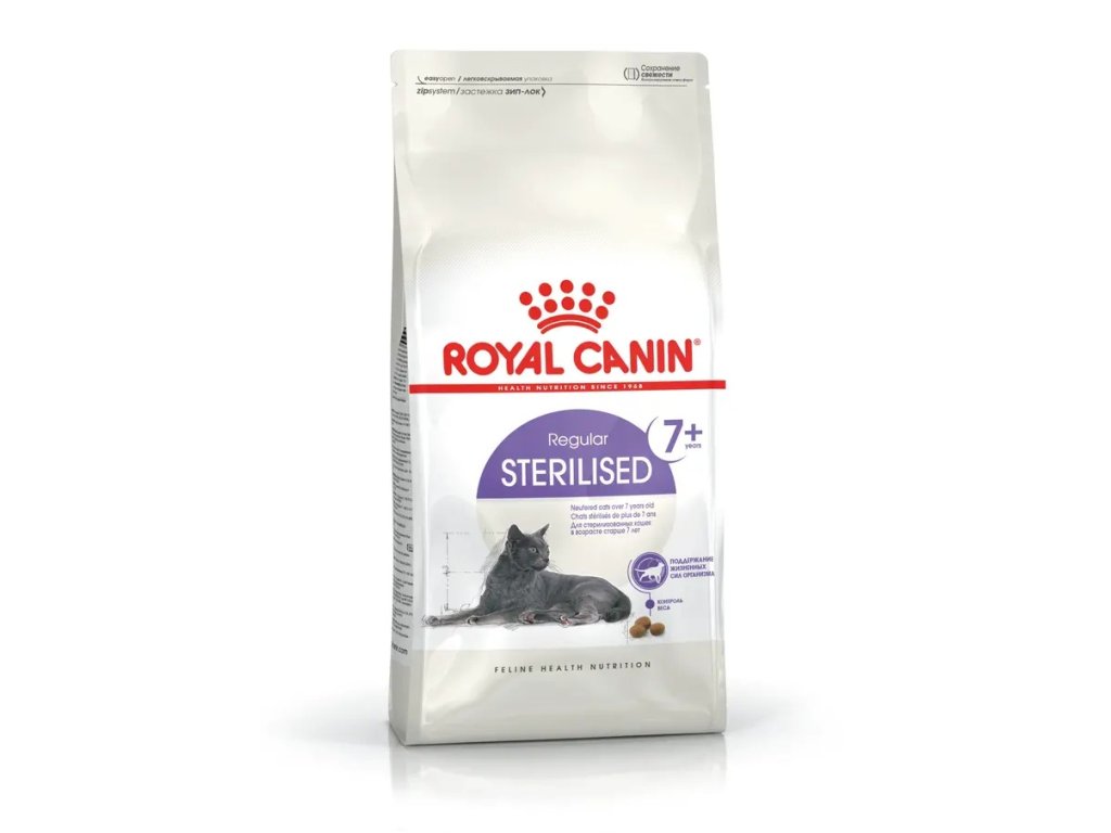 - Energetické nároky se u koček po kastraci snižují. STERILISED 7+ pomáhá omezit riziko nabírání na váze díky upravenému obsahu tuku a adekvátním denním dávkám.