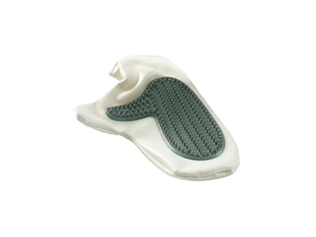 Masážní rukavice z kaučuku. Jedinečný desing s trojím účinkem trojhranných měkkých prstíků.Používá se na sucho i ve vodě při koupání. Pěna šamponu se pomocí rukavice pravidelně roznese a dostane se hluboko do podrůstající srsti. Rukavice odstraňuje uhynulé parazity, jemně masíruje, zjemňuje srst. Vhodná pro všechny rasy psů.